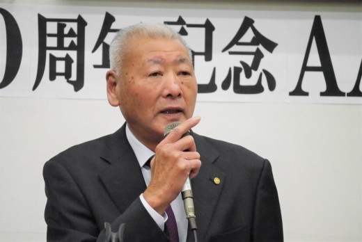 続いて来賓あいさつに立ったJUコーポレーションの原口広治取締役専務執行役員は「30周年と一言に言っても、とても長い年月の積み重ねです。ここまで培ってこられた会場の歴史は、役員をはじめ皆様の力を結集した賜物です。JUコーポレーションもネットを通じてご支援させていただきます」と、賛辞を送った。