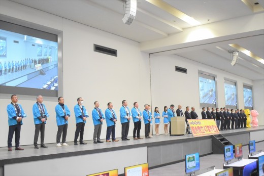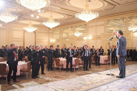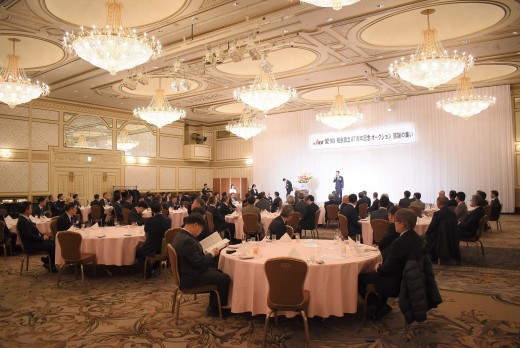 来賓あいさつでは、JU中部・奥村悦二会長が「我々は常にJU愛知を目標とし、勉強させていただいております。オークション運営のみならず、事務局の体制、また、加藤会長が肝煎りで進めている『検査コンテスト』や『マーくんタクシー』を活用したJUブランドの周知など、その活動に敬意を表します」と述べ、続いて、JU中部・萩原通弘流通委員長が「特筆すべきは、外国人バイヤーさんとの共存・共栄のモデルとなっている点です。今の日本経済において、彼らの力は不可欠です。愛知さんは早くから彼らと良好な関係を築き、本日も理事・役員の中に外国籍の方がおられる。これは非常に素晴らしい形です」と祝辞を述べた。