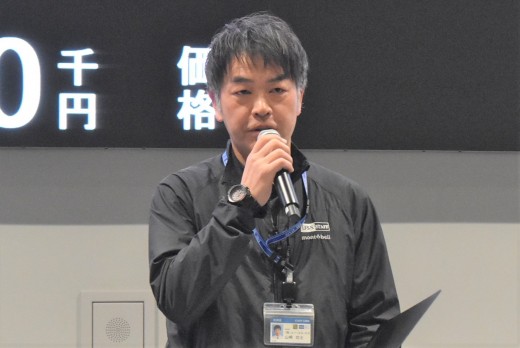 セリ前のセレモニーで丸尾直輝会場長があいさつに立ち、早朝からの来場と多くの出品のお礼とともに「ジャンボタワーは10年前に、どんな天候であっても十分に下見ができ、そしてたくさんの大事な車が安全に収容できるというコンセプトのもと、6000台が収容できる立体駐車場として建設されました。今回、10周年を開催するにあたり、サブタイトルとして『10年で築いた信頼をこれからの未来へ』という言葉を掲げています。これからはこの信頼をさらに深めながら、より利便性の高い、会員の皆様にとって使いやすいオークション会場を作って参りたいと思います」と述べた。