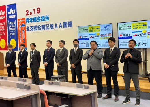JU群馬(神保文明理事長)は2月19日、「青年部会担当・全支部合同記念AA」を開催した。当日のセリは出品目標の1200台を大きく上回る1414台を集荷。全支部と青年部会がそれぞれの目標台数を達成するなど、JU群馬が一丸となって臨んだ結果、成約883台、成約率62.4%、成約単価39万4000円の好成績を収めた。また、青年部開催を受け、JU関連協各県やJU福島から、青年部会長や部会員らが多数駆けつけ開催を盛り上げた。