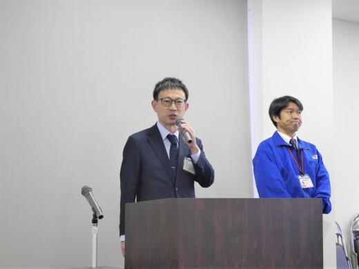 セレモニーにはJUコーポレーションの田中健一部長も登壇し「今年度最後のビッグオークションに1970台という多くのご出品が集まりました。JUコーポレーションでは『JUテントリ』春キャンペーンを展開中です。奮ってのご活用を宜しくお願いします」と、あいさつを述べた。