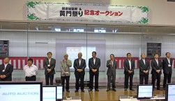 JU茨城(茨城県小美玉市・磯崎孝理事長)は8月8日、「関連協協賛&黄門祭り記念AA」を開催した。セリ前の記念セレモニーで挨拶に立った磯崎孝理事長は、「毎年恒例の『黄門祭り』にタマ不足の中、730台を超える出品を頂きました。会員皆様のご協力に感謝申し上げます。本日はJU千葉の宮崎理事長、JU東京の金子理事長、関連協の森田専務にご参加頂いています。オークション終了後に納涼会を開催、イベントや屋台などを準備していますので、楽しんで頂きたい」などと謝辞を述べた。