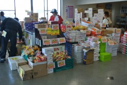 セリ前にはJU宮城の執行部が整列。鹿野利徳理事長が挨拶に立ち、「組合設立が昭和52年、昭和60年には大和町にオークション会場を建設、平成8年には現会場を建設した。諸先輩方が苦労をなされて今がある。これから38周年、39周年と年を重ね、節目の40周年に向け頑張っていきたい」と述べた。また、「新年度から消費税がアップし、市況も不透明だがお互い切磋琢磨し頑張っていきたい」と呼び掛け、最後に雪の中、出品いただいた会員に謝辞を述べ、挨拶を締め括った。当日はイベント企画として模擬店を開店。5台出品、1台落札毎にお買い物券をプレゼントしセリを後押しした。