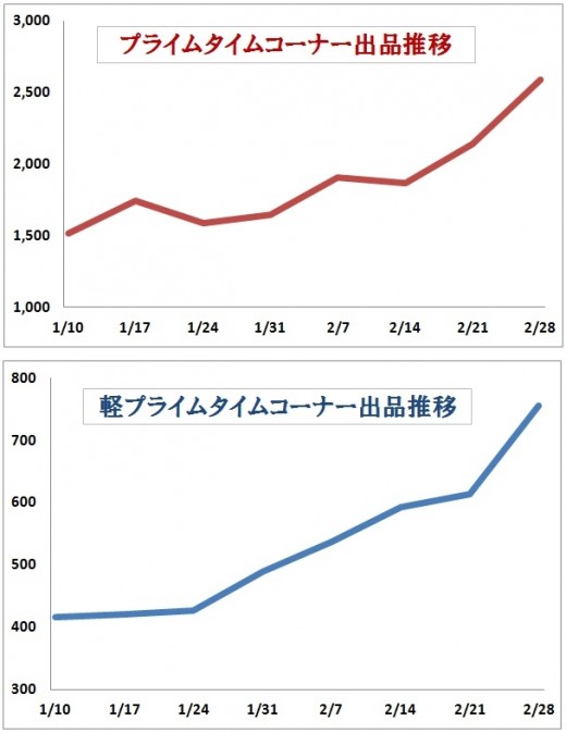 この要因は2月月間で実施したハッピーAA(プライム系コーナー出品拡販施策)でプライムの平均出品2126台、軽プライム625台と1開催平均3000台近い高実績を記録した点。