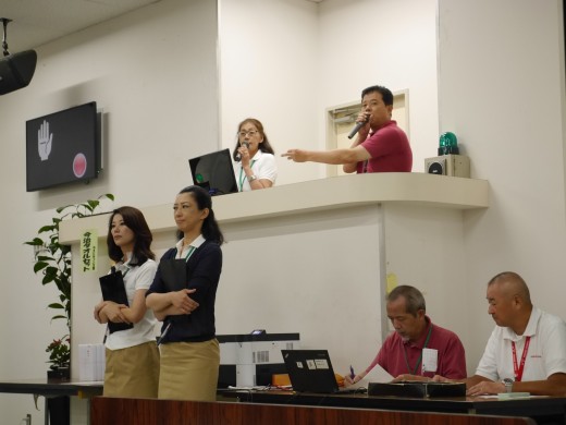 セリ開始前のセレモニーでは、真坂忠司副社長が「日産大阪6周年を迎えましたが、当時は日産販社の統合という大きな出来事でした。当会場は30年の歴史がありますが、AAを支えていただいている会員の皆様のおかげです。上期はタマ不足により大変苦戦しました。新型セレナ発売が大増販のきっかけとなり、今後は出品車が大いに増えることを予想しています」と挨拶した。