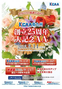 こうした中、同社グループ会場のKCAA南九州(宮崎県えびの市・大峰社長)においても9月14日に「創立25周年大記念AA」を盛大に開催する。