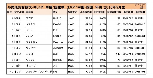 グーネット調べによる小売成約台数ランキング(月度)を掲載しております。全国7ブロックで小売りで成約となった販売データですので、仕入れや売却の参考にお役立てください。