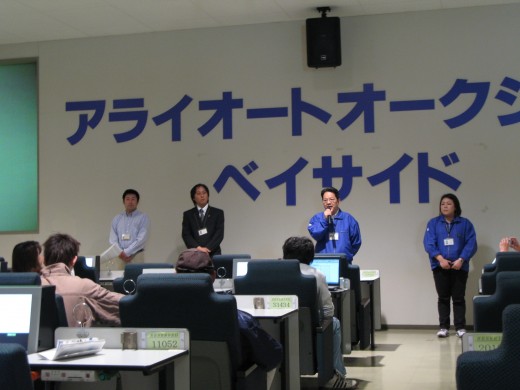 開会の挨拶は荒井寿一会長が登壇し、震災の影響AAを休催(入札会を実施)していた仙台会場のAA再開を報告し「被災地は復旧に向かって着実に進んでおり、当社もオークション会場の使命を全うしたい」と述べた。そしてKMA(神奈川オートバイ事業協同組合)、首都圏のAJ(オートバイ組合)の本開催への協力に謝辞を述べ、今後の提携開催などで会員の取引を支援、そして被災地支援を進めると表した。