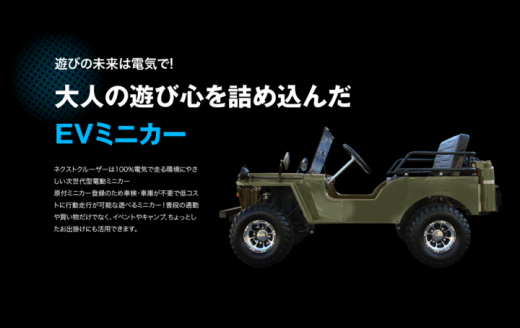 ブレイズ(名古屋市中川区・市川秀幸社長)が販売している公道走行可能な4輪ミニカーnextcruiser(ネクストクルーザー)がEV車を追加、業界内で注目を浴びている。