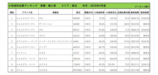 ユーザーに人気があるクルマの成約率や仕入れてから販売されるまでの平均店頭在庫日数、前月との比較データもございます。小画像には軽自動車や輸入車のランキングも掲載していますのであわせてご参照ください。