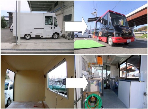 移動販売車のベース車両は軽自動車からマイクロバスまで。お客様の要望に応えた全てがオーダーメイドのクルマ。