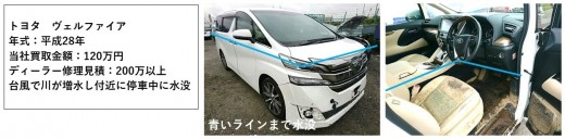 水害車両は被災地の交通インフラの復旧を妨げる要因の一つにもなり、その処分が大きな課題となる。また、一般的に、室内が浸水しエンジンがからない状態の車は、修理に100万円以上の費用がかかるケースが多く、ディーラーなどでは下取り価格も付かないため、被災者には大きな経済負担となる。