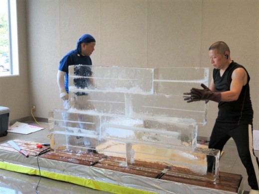 会場1階ロビーで行った「氷の彫刻ライブアート」では、全国大会優勝経験のある「岡山県氷彫刻会」の森川氏が来場した。今年のモチーフは「大鷲」で巨大な氷塊から大きく羽を広げた鷲が削り出されていく様子を大勢の会員が見守った。完成した氷像の周りには、記念写真を撮る会員や涼を求めて寄り添う姿などが見られた。当日は女性スタッフが涼しそうな浴衣姿でお出迎えし、華やいだ雰囲気のAA開催となった。